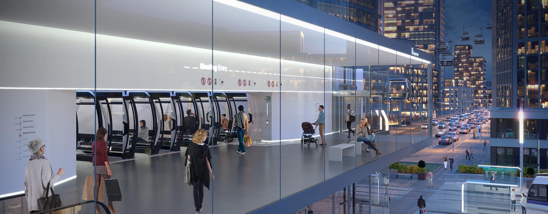 The fully autonomously operating AURO ropeways completely revolutionize the possibilities for the use of ropeways - especially in urban areas. AURO Urban is the adaptation of this ropeway technology for use in the city of the future. The elements of the boarding area were further developed - based on the AURO Alpine technology - and optimised for urban applications and the differing requirements arising in this area. One main focus was the architecture of the station and its integration into the city. Through the station design, mobility hubs are created that open up new possibilities for connecting different transportation systems and revolutionising urban mobility in the long term.