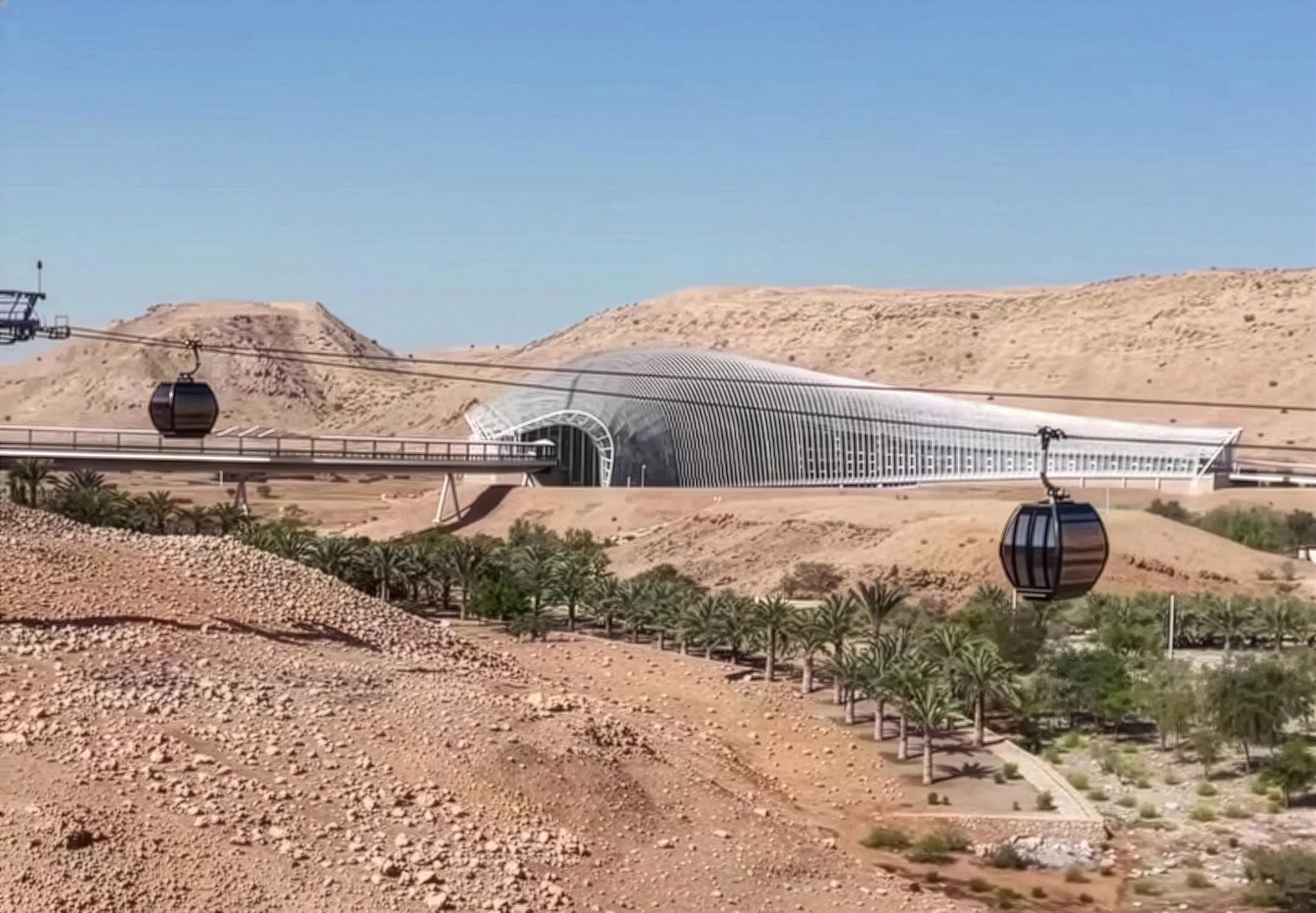 Mit der ersten Seilbahnanlage in Oman wurde ein technisch komplexes Infrastrukturprojekt realisiert, das speziell auf den zuverlässigen Betrieb unter extremen klimatischen Bedingungen ausgelegt ist. Durch den Einsatz von leistungsstarken Klimaanlagen in den Kabinen wird auch bei Temperaturen von bis zu 50°C ein bequemes Fahrgasterlebnis gewährleistet. Die Anlage verfügt über moderne Omega V Kabinen und die D-Line R3 Stationsverkleidung. Weitere konstruktive Besonderheiten wie Lösungen der Stützen ohne zusätzliche Verbindungsstücke sowie eine Mittelstation mit Ausblick auf die umliegende Gartenlandschaft prägen die Anlage. Das Projekt verdeutlicht den Anspruch, technische Leistungsfähigkeit mit einer sensiblen Einbettung in die bestehende Umgebung zu verbinden.